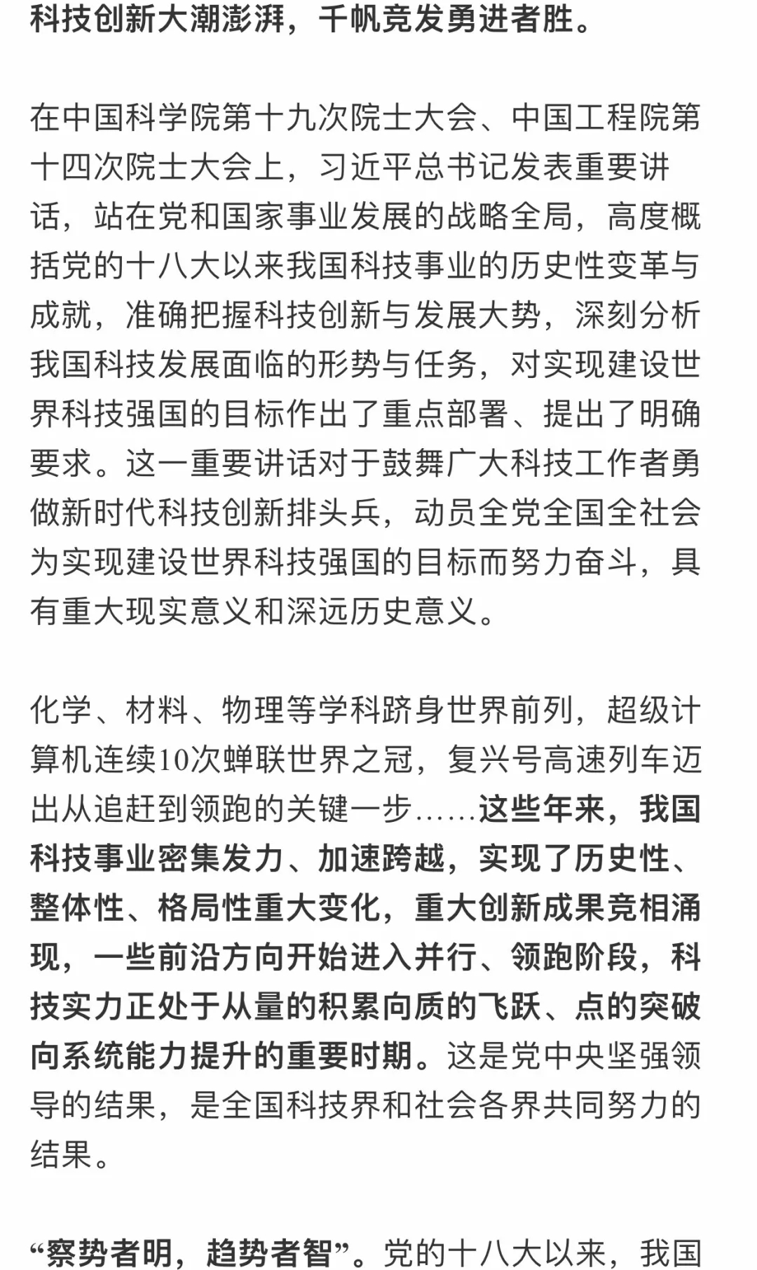 深刻把握科技創(chuàng)新與發(fā)展大勢—— 一論學習貫徹習近平總書記兩院院士大會重要講話
