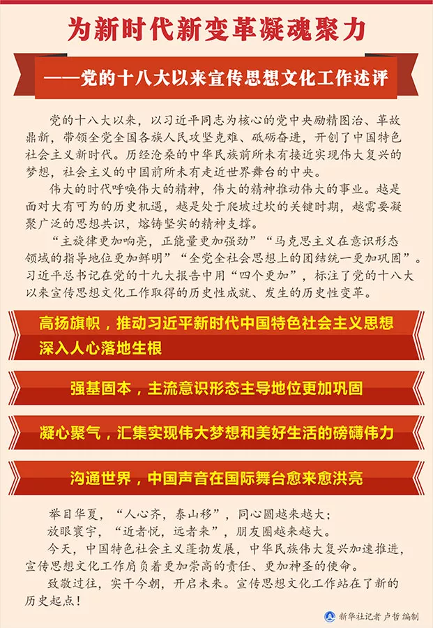 為新時(shí)代新變革凝魂聚力 ── 黨的十八大以來宣傳思想文化工作述評(píng)