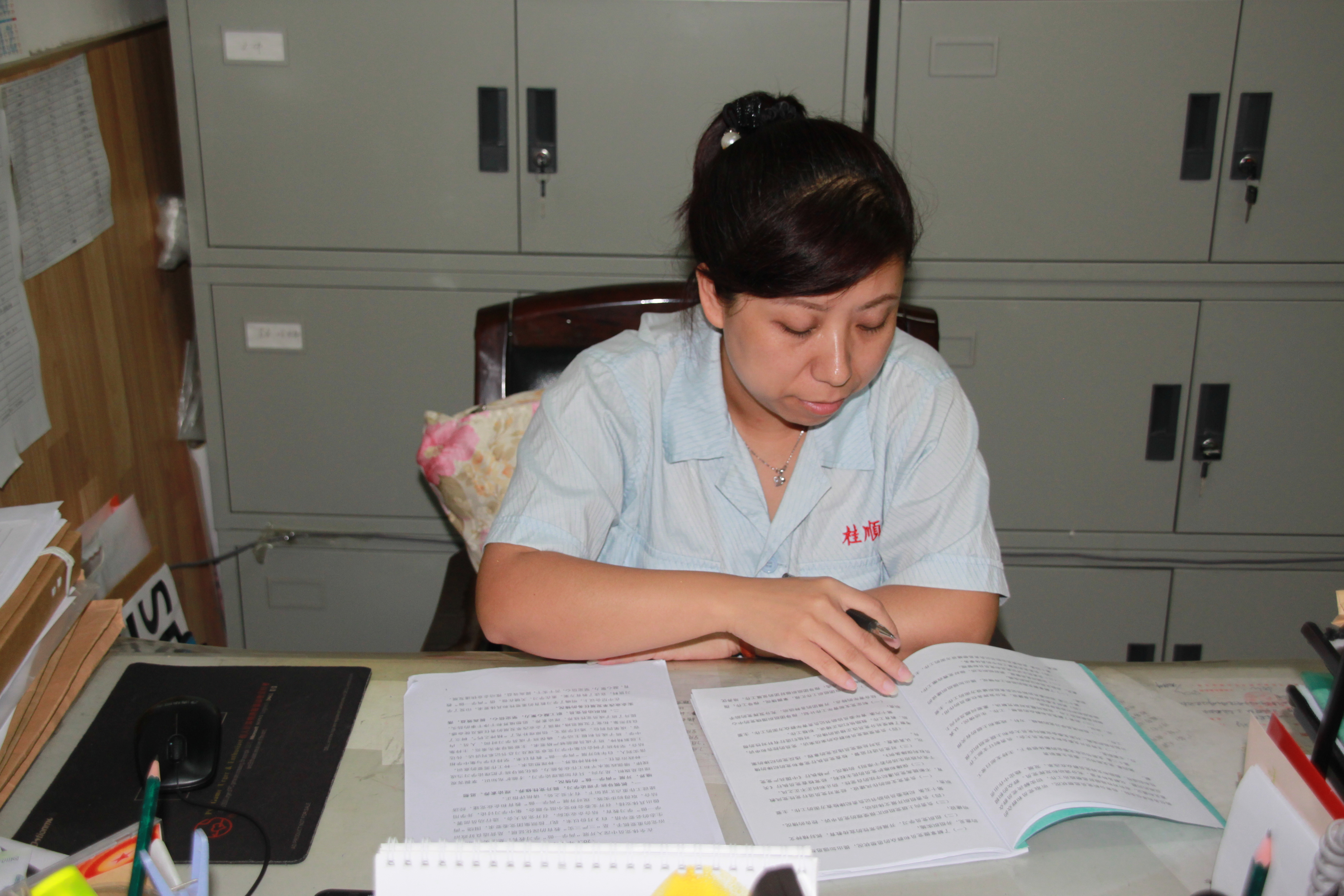 楫維維不但做好黨務(wù)工作和紀(jì)檢專職干部工作,還負(fù)責(zé)人力資源工作,另外她還帶領(lǐng)著一位辦公室職工承擔(dān)企業(yè)的宣傳、后勤、工會、信訪、法務(wù)、檔案等多項工作。雖然所承擔(dān)的工作量大,涉及面廣,但她還是不厭其煩、從無怨言。那么多項的工作內(nèi)容,在她干起來是得心應(yīng)手、有條不紊,大家都夸她能干,但其實很多時候這種能干,都是她自己加班加點換來的。每個早晨,她總是第一個來到辦公室,而一天的工作結(jié)束后,又總有她的身影還在辦公室里停留,她總是希望每天都能多干出一點來。面對著這樣的工作量,她從沒說過辛苦,因為在她看來這正是自己不斷提升,不斷完善的最好的機(jī)會,這種不知滿足的工作精神鼓舞著她,推動著她不斷的前行。