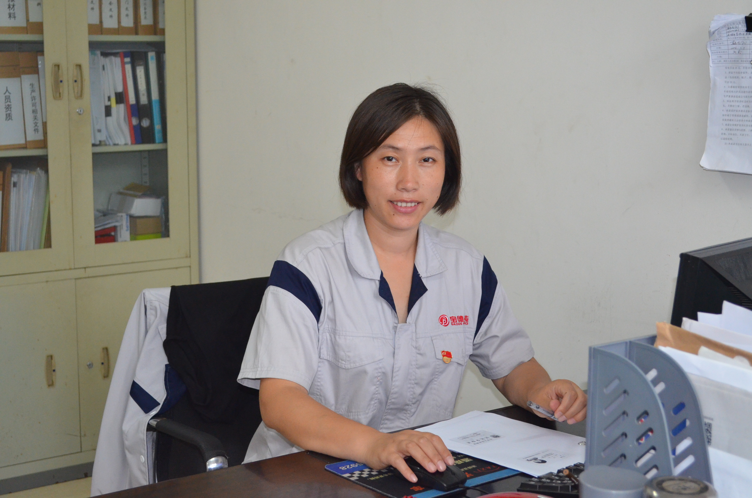 “宮姐,我要充飯卡”、“宮姐,幫我領(lǐng)一支筆”、“宮姐,有兩位新入職的員工,你帶領(lǐng)他們熟悉一下公司環(huán)境”、“宮姐,聯(lián)系一下打印機(jī)維修公司,打印機(jī)出故障了......”早上七點(diǎn)半,在寶德公司辦公室里,辦公室主任宮鳳賢開始了一天既瑣碎又忙碌的工作。只見她面帶笑容,和顏悅色,跟大家打招呼的同時(shí),熟練利索地幫助每位同事解決問題。雖然,她也是一名80后,但是大家都喊她“宮姐”。